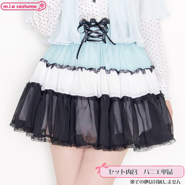 モノトーンMIXの配色がダークファンタジーなイメージ!ウエストの編み上げやフワリと揺れるシフォン生地が、ガーリーなイメージを演出してくれます♪