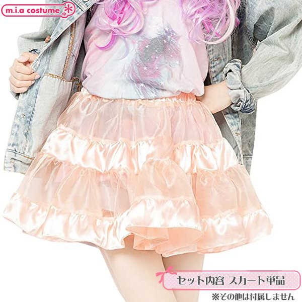 イベント用のコスプレやパーティー用としても良さげなコスプレです♪サテンの光沢感とシースルー素材の組み合わせがとても可愛いティアードスカート!重ねるボトムスで様々なコーディネイトを楽しみつつ、甘いベビーピンクが優しい印象を与えてくれます♪ふんわり広がるガーリィな印象とシルエット。