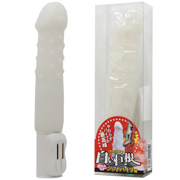白い巨根シリーズから純白の3アイテム登場!こちらはソフトバイブ編です。