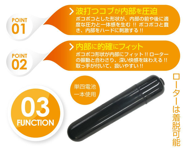 ポコポコ形状が内部にフィット!前後に適度な圧力と一体感を与えて下半身を震撼させる電動アナルグッズ。