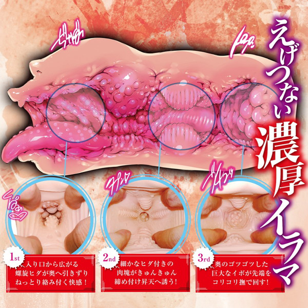 「姦」シリーズから濃厚なイラマが堪能できる非貫通型の最新作オナホが登場♪ザラついた舌の奥先は螺旋ヒダが広がり、引きずりこみながらねっとりと貴方に絡み付く!さらに進めば肉塊で狭まった内壁に締め付けられ、そしてイボイボ突起のオンパレードでいざ昇天♪巨大イボやヒダヒダギミックによるイラマ感をぜひ体感あれ!