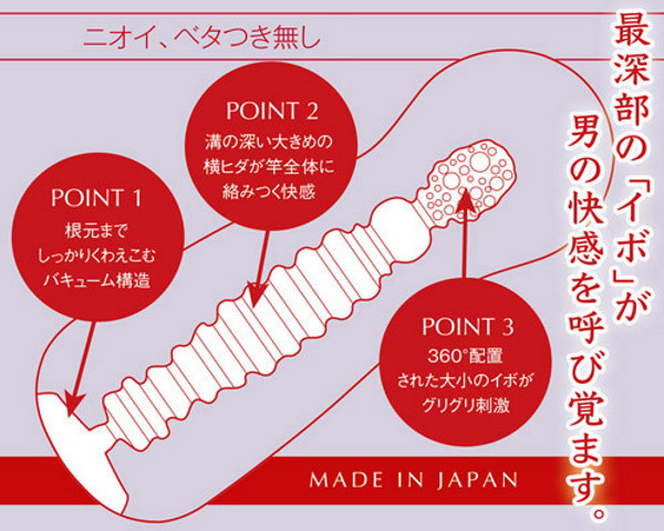 最深部の「イボ」が男の快感を呼び覚ます「バブール ディープ」根元までしっかりくわえ込むバキューム構造に加え、溝の深い大き目の横ヒダが竿全体に絡みつき快感を与えます。