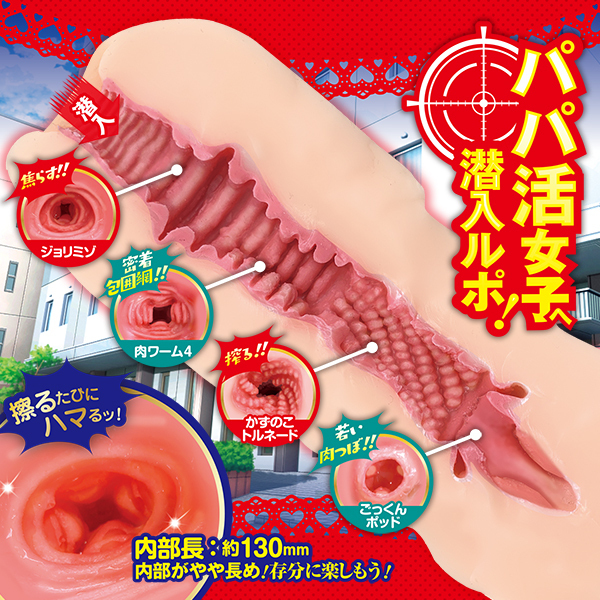 擦るたびにハマっちゃうパパ活女子♪相性がよければ、Eチャンの太Pになってネ♪<内部形状>内部がやや長めだから存分に楽しもう♪■焦らす!!…ヨコミゾ■密着包囲網!!…肉ワーム4■搾る!!…かずのこトルネード■若い肉つぼ!!…ごっくんポッド・非貫通・ミニローション付属