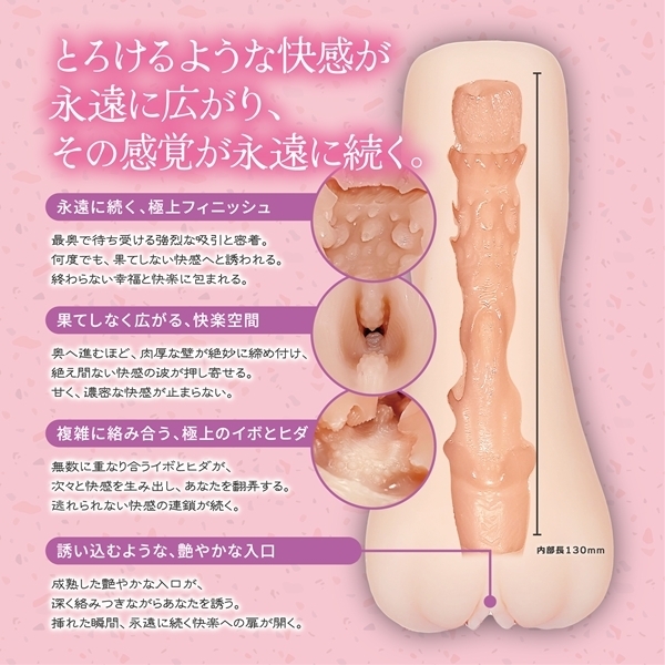 非貫通オナホとして設計された本格派アイテムです♪内部は上下に連なる大きなイボが配され、ツブツブと横溝の組み合わせで多彩な刺激を体感できます!深部手前には攻撃的なイボが配置され、リアルな刺激を追求しました♪最後は子宮口のような設計でしっかりとフィットし、満足感を与えます!コンパクトな280gのボディと130mmの内部長さで、持ち運びも便利♪ローションも付属しているので、開封後すぐに使用可能です!素材は高品質なTPEを使用し、リアルな質感と安心の使用感を提供します♪お手入れも簡単で、長く快適に楽しめる設計!非貫通タイプならではの奥行きある体験を、ぜひご堪能ください♪