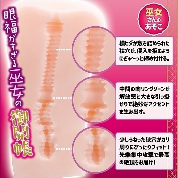 人気を博した御開帳miniシリーズにBIG版が登場!巫女さんのあそこは横ヒダメインのゾリゾリタイプ。