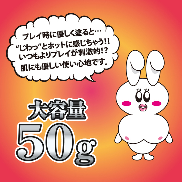 血行を促す成分や爽快感のあるハッカ油ほか、潤い成分のヒアルロン酸を配合で使用感も抜群!ホットな快感が全身を駆け巡る♪官能的なイランイランの香りで更に興奮度アップ!たっぷり使える大容量50gサイズの女性向けエッチコスメです。