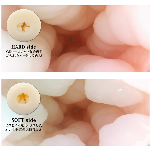 片方はイボベースのゴリゴリ感が味わえるタフな作り、もう片方はヒダとイボのミックスとなっております。