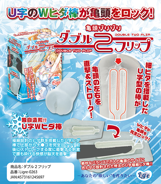亀頭をダブルのヒダ棒が行き交う!亀頭ぞりぞり「ダブル2フリップ」の登場です!2つの細ヒダを搭載したヒダ棒。