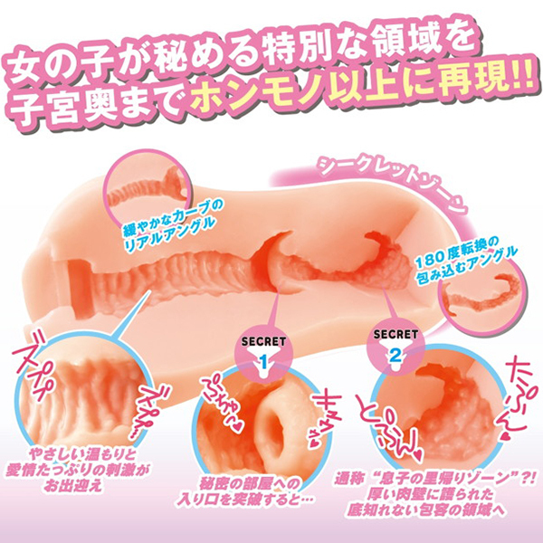 女の子の特別な領域を、子宮の奥まで本物以上に完全再現!リアルベースに拘った肉厚ボディの本体は、挿入すると入り口付近から優しいぬくもりと愛情たっぷりのヒダヒダでお出迎え。