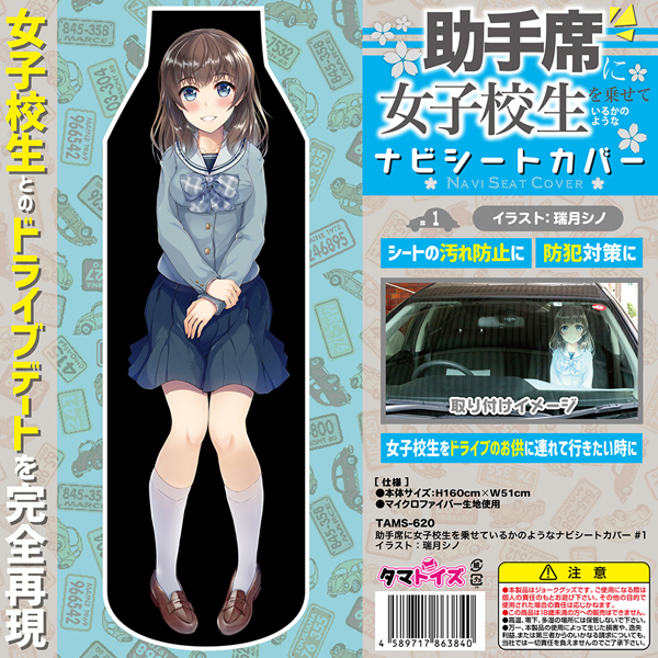 可愛い女子校生とドライブデートが出来る!?人気絵師「瑞月シノ」氏描き下しのイラストがプリントされた座席シートカバー。シート汚れ防止や防犯対策にもうってつけ!座席に装着するだけでデート気分が味わえるナビシートカバーです。大人気の「女子校生を助手席に乗せた時の匂い」シリーズと組み合わせても◎●メーカー型番:TAMS-620