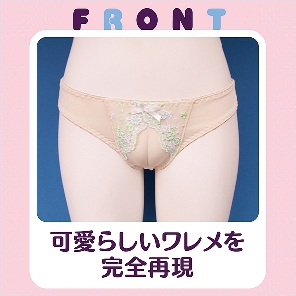 可愛らしいワレメを完全再現。おとこの娘のオシャレは下着から、ワレメがくっきりと映るショーツはレースが可愛らしいフルバックショーツ。ワレメアピールで視線を釘付け!