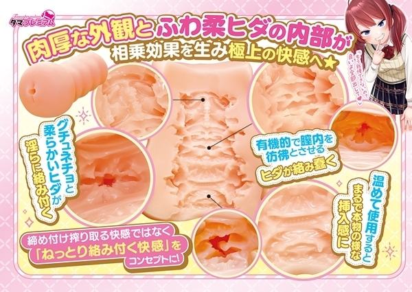 ミニ系ツインテール美少女のふわ柔名器はコンパクトながらもしっかりとした重量感が魅力の非貫通オナホです!全長170mm・重量520gのバランス設計で扱いやすさと安定感を両立しています♪内部には柔らかめのヒダ構造を採用し自然な感触を追求した設計です!フレキシブルスキン素材を使用し伸縮性と弾力性に優れた心地よい触感を実現♪回転使用も可能な構造で自由なスタイルで楽しむことができます!上下の区別がない仕様なので自分に合った角度を見つけやすいのもポイント♪日本製&ローション付きで安心してご使用いただけます!可愛らしいイメージと機能性を両立した実用性の高い非貫通オナホです♪●TMPR-057