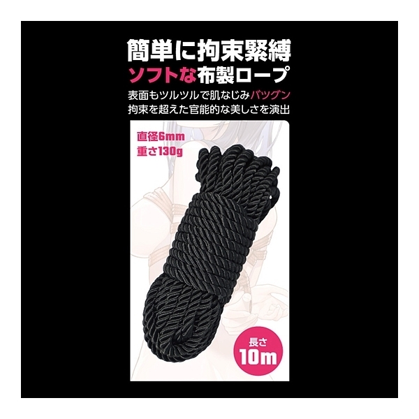 麻縄とは異なり、毛羽処理やなめし加工など必要なく、開封後すぐに緊縛できちゃいます!長さは贅沢に使える全長10メートル。