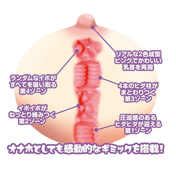 ひだひだタイプは、左右からの圧迫感のあるヒダヒダがお迎えし、イボイボが絡みつくゾーン、4本のヒダ柱がまとわりつくゾーン、そしてランダムなイボがすべてを吸い取るフィニッシュエリアへと続きます。