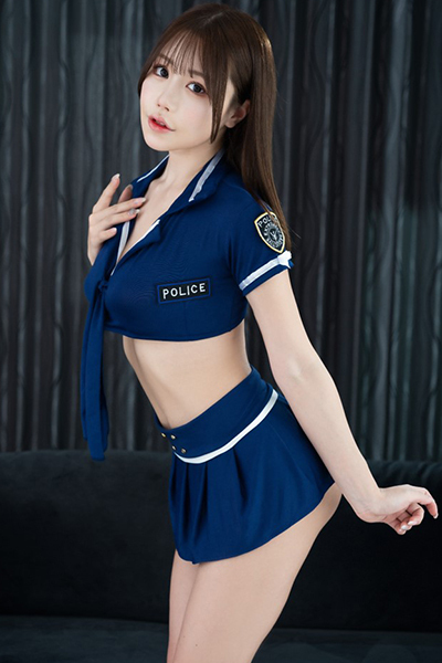 ミニスカートでの美脚見せに視線集中間違いなし!豊かなお尻とレオタードのラインがはっきりみえて。セクシーさを極めた警官風セクシーコスプレでパートナーを誘惑しちゃいましょう。